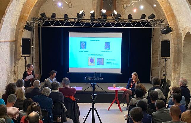 Dans la petite ville monastique, visiteurs et touristes se promènent à travers les petites rues de la cité médiévale classée ville du livre depuis 2000. L'identité de la commune est rappelée jusque dans le nom des restaurants comme "Les mets et le mot". Le festival veut cette année décliner le mot sous toutes ses formes et de manière « légère, joyeuse et positive ». « On a souhaité casser la relation entre sachant et disciple et aussi la gravité du mot "transmettre", surtout depuis la pandémie, en y associant le concept de "gai savoir" », explique Philippe Le Moine, directeur de la Cité du mot et organisateur de la manifestation. Nouveauté pour cette 4e édition, des activités estampillées « Le mieux c'est faire » sont proposées et invitent le public « à mettre la main à la pâte ». « On avait envie de proposer autre chose que des spectacles et des conférences », insiste le directeur de l'établissement culturel.