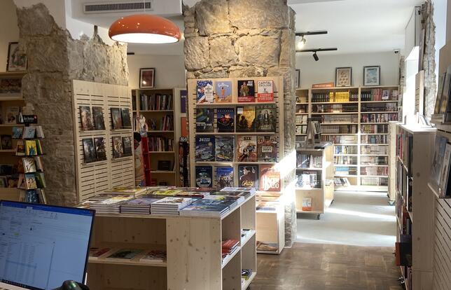 Rien d’étonnant alors à ce que ces différents formats tapissent, avec des albums jeunesse, les 80m2 de la nouvelle librairie. Fier de cet espace « assez grand pour accueillir des références et suffisamment petit pour être cosy », Cyril a judicieusement pensé l’aménagement. Les romans graphiques trônent ainsi au milieu du manga et de la jeunesse « pour que les gens ne se ruent pas uniquement sur le manga et découvrent autre chose », explique-t-il.