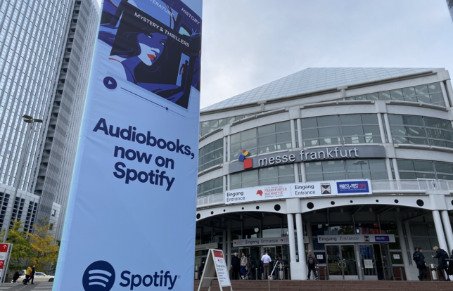 Difficile de les manquer. Aux entrées du Frankfurt Messe, gigantesque hall d’exposition qui accueillait du 19 au 23 octobre la grande messe annuelle des éditeurs mondiaux, des publicités géantes clament haut et fort le lancement prochain de Spotify dans le livre audio. Entre conférences faisant salles combles, éditeurs de moins en moins timides et distributeurs qui se frottent les mains, l'écosystème du livre audio, en pleine ébullition, a clairement fait entendre sa voix dans les allées de la Foire de Francfort 2022.