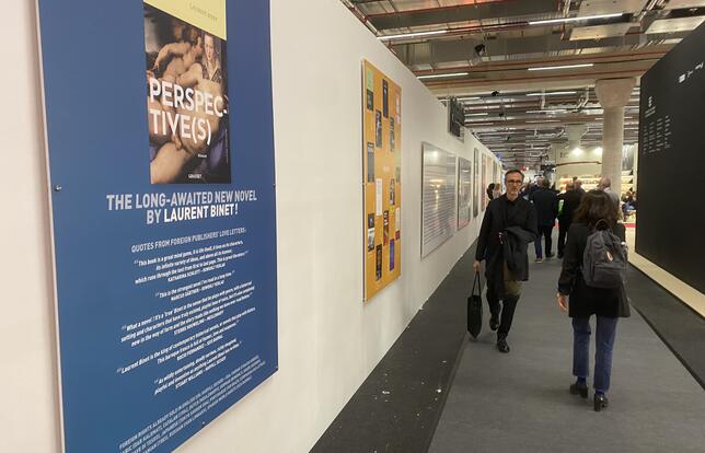 Dans le hall qui regroupe les éditeurs français lors de la Foire du Livre de Francfort 2023 - Photo ED