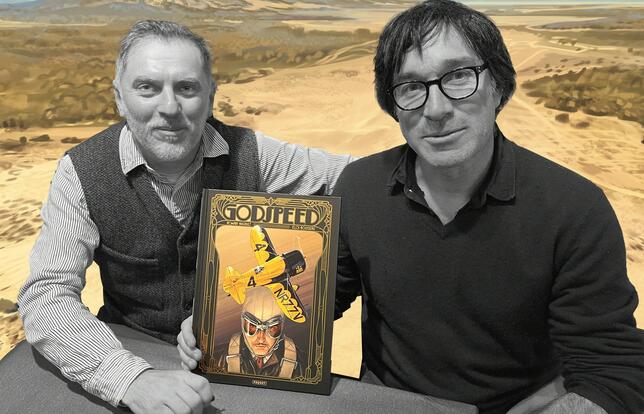 Avec Godspeed, paru aux éditions Paquet, Romain Hugault et Éloi Rousseau replongent en plein âge d’or de l’aviation dans l’Amérique des années 1930.