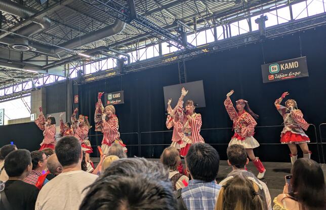 C’est dans cette atmosphère joyeuse que commence la Japan Expo. Joyeuse et fantaisiste, car, dans quel autre festival peut-on voir un dinosaure faire la queue pour un sandwich ?