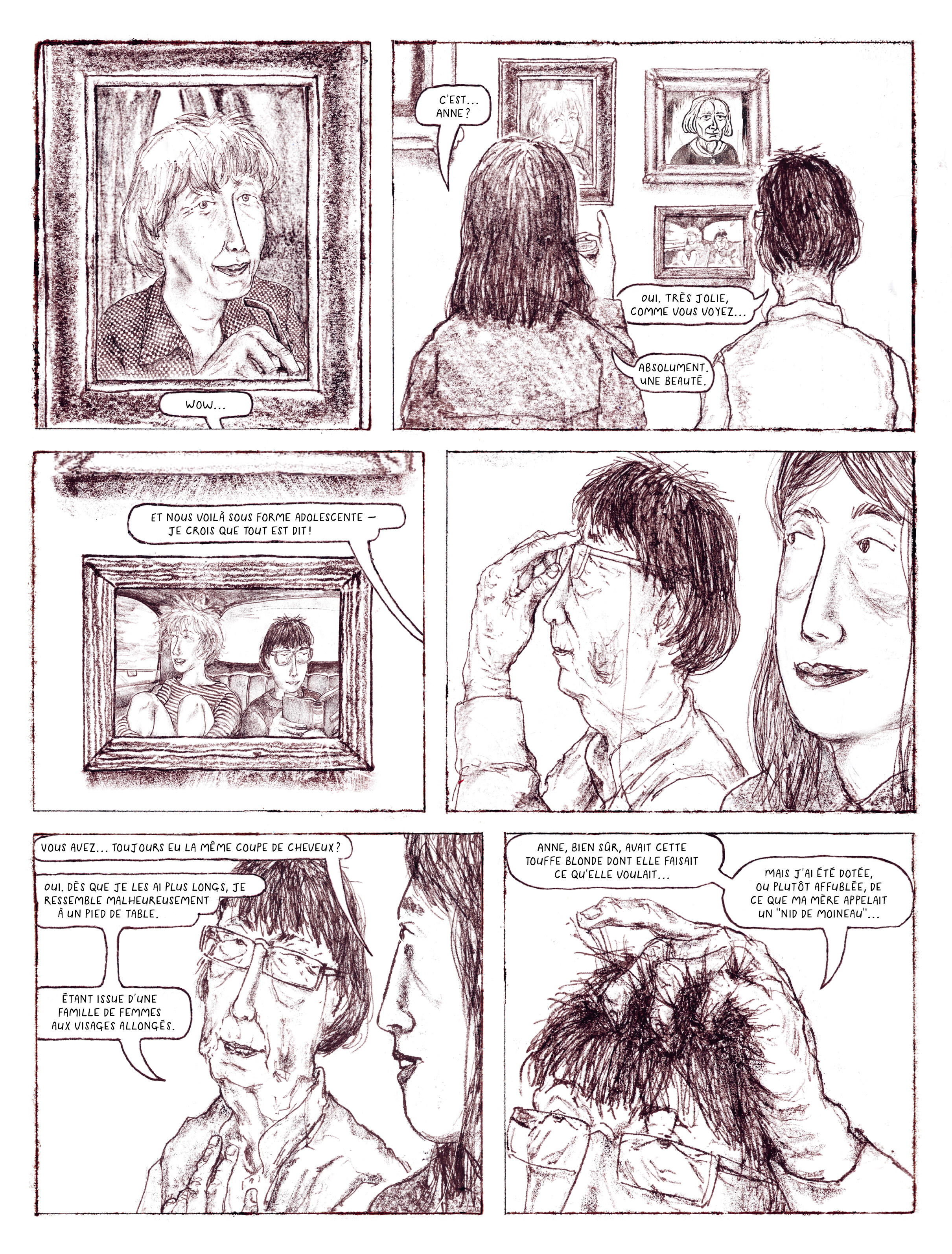 À rebours des romans graphiques misant souvent sur un concept ou une thématique sociétale forte, Chère historienne est avant tout une étude de mœurs d'une grande finesse sur l'image qu'on se fait de soi et qu'on pense renvoyer. Elle s'appuie essentiellement sur le texte- voix off et dialogues d'une rare qualité, traduits avec élégance et mordant par Martin Richet - et sur une gestuelle d'une admirable précision. Prouesse supplémentaire, Joff- Winterhart réalise ses planches en monotype, une technique d'estampe aux beaux effets de matière, mais rarement utilisée en bande dessinée. Sa texture vaporeuse n'obère en rien le degré de détails dans les expressions ou les postures, et donne au contraire une belle chaleur à ce récit d'émancipation inattendue.