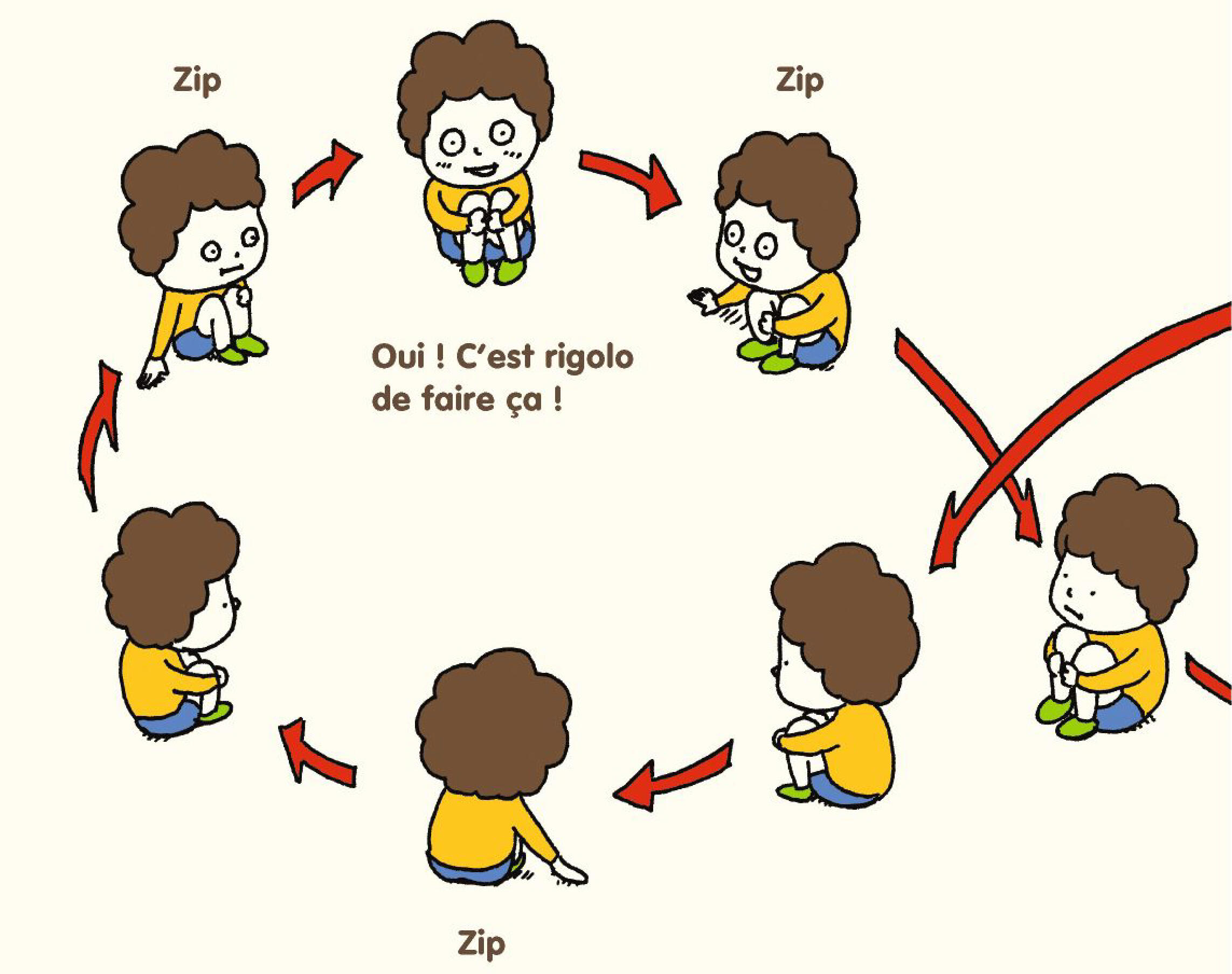Et les autres, comment ressentent-ils l'ennui ? Le cloporte ? Le distributeur automatique ? L'emballage de sa paille en plastique ? Peu à peu, le champ des idées s'élargit. A quoi ressemblerait le parc d'attractions le plus ennuyeux du monde ? La grande roue serait très petite, le train des montagnes russes très lent, les fantômes amicaux et souriants, et les jeux faciles. Autre hypothèse à explorer, celle de réunir 300 personnes qui se morfondent. S'ennuieraient-elles 300 fois plus ? C'est peut-être une question d'âge, finit par se dire notre philosophe en herbe. Pas de meilleur interlocuteur que Papy pour ce genre de questions. Mais c'est bizarre, quand Papy répond, il est plié de rire... En un mot, il n'a pas du tout l'air de s'embêter. Allez y comprendre quelque chose, à ce vaste sujet universel et philosophique. On adore cet album facétieux et rigolo. Le petit garçon certes s'ennuie, mais nous, pas du tout ! Bien au contraire !