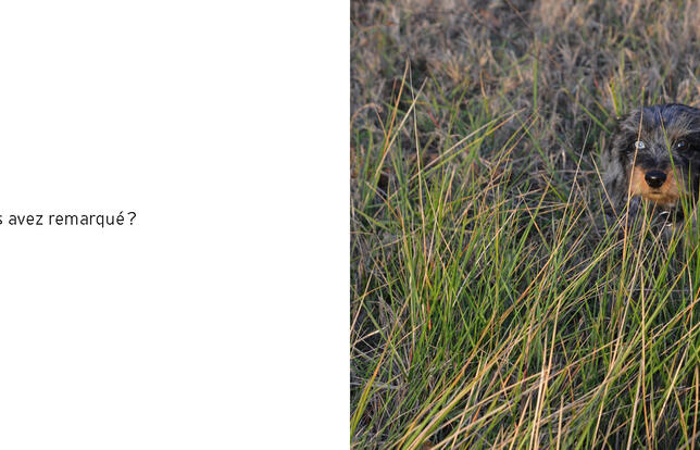 Drôle d'album pour un drôle de chien ! À la manière d'un photoroman des années 1950, Julien Baer nous parle de son chien Piloti. Sur la page de gauche une photographie, où le jeune lecteur peut exercer son sens de l'observation, le montre sous toutes les coutures et dans tous les décors. Et sur la page de droite un court texte interroge la relation du maître avec son fidèle ami. Il faut dire que Piloti est à croquer et qu'il ne ressemble à aucun autre avec son œil bleu et son œil brun, façon David Bowie. Quand il apparaît sur fond de feuillages sombres, on le voit à peine, il est plus camouflé qu'un char militaire, son pelage hirsute se confond avec la masse de la haie. Quand il se balade au bord de mer, là où l'eau est ourlée d'écume, on jurerait qu'il a légèrement la trouille d'aller plus avant, tant sa façon de poser une patte dans l'inconnu liquide est peu sûre. Sur les tommettes en terre cuite rouge, il a l'air tout penaud et pensif. Sur son tapis aux motifs de couleur, cette fois, c'est certain, il a des sentiments au même titre que moi. Au fond, qui est vraiment Piloti ?, nous demande cet album qui assène mine de rien une leçon de philosophie tout en douceur. Piloti ressent-il tendresse et empathie pour moi, autant que j'en ressens pour lui ? « Il n'est pas de ma famille, ce n'est pas mon cousin », conclut pourtant Julien Baer en faux candide. « Soyons raisonnable, Piloti est un chien, pas un être humain. » Avant de reculer et de trancher tout en coupant la poire en deux : « Piloti est un être teckel et moi, un humain nain. » À méditer...