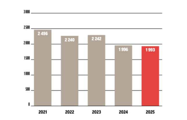 Avec 1 993 nouveautés et nouvelles éditions, la production de décembre baisse de -0,2 % par rapport à celle de décembre 2024, où elle s'établissait à 1 996 titres.