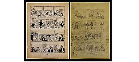 A côté de pièces comme des albums ou des plaques émaillées, figuraient notamment une affiche de théâtre de décembre 1941 pour une pièce jouée en pleine occupation allemande et cosignée par Hergé: M. Boullock a disparu ou les nouvelles aventures de Tintin, ainsi que trois planches crayonnées et deux encrées.