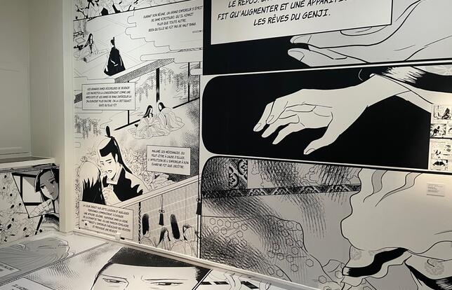 Le musée national des arts asiatiques-Guimet célèbre ce trésor de la littérature japonaise à travers l’exposition « À la cour du prince Genji : 1000 ans d’imaginaire japonais » qui a ouvert mercredi 22 novembre. Elle est dédiée à maître Itaro Yamaguchi (1901-2007), issu d’une lignée de tisseurs de soie. Ses quatre rouleaux de brocart, version tissée du grand classique nippon, montrés pour la première fois en France et se déployant sur plus de 30 mètres de long, sont le clou de l’exposition. De l’estampe au manga, du kimono aux objets laqués… les épisodes des aventures du Genji sont autant de motifs pour la création.