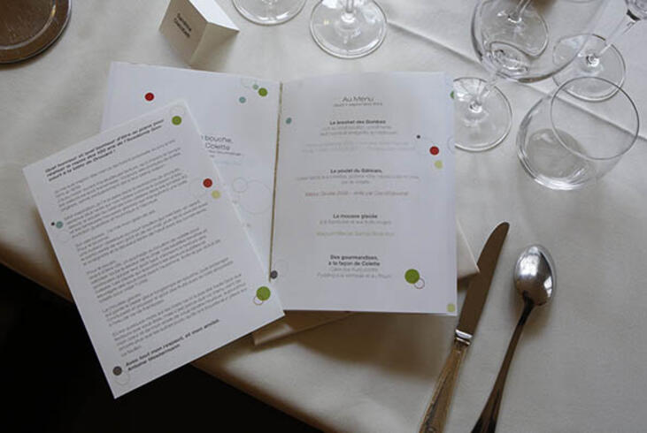 Des mises en bouche à la façon de Colette puis un repas inspiré des menus du jury Goncourt entre 1914 et 1939, avec produits de saison, ont été servis aux convives.