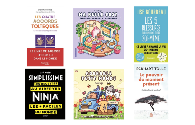 Six des vingt meilleures ventes relèvent de la psychologie et du développement personnel, et quatre d'entre elles sont des fonds de catalogue. Les Quatre Accords Toltèques de Miguel Ruiz, première vente du rayon en 2025 avec 128 000 exemplaires écoulés dans l’année avec sa nouvelle édition sortie chez Jouvence en août 2024 (189 000 en tout), était déjà présent doublement dans le classement 2024 (en 3e et 11e positions). Les 5 blessures qui empêchent d'être soi-même de Lise Bourbeau (Pocket, 3e) se maintient sur le podium après sa 2e place de 2024 tandis que Le pouvoir du moment présent d'Eckhart Tolle (J’ai Lu) régresse de deux rangs à la 6e place.