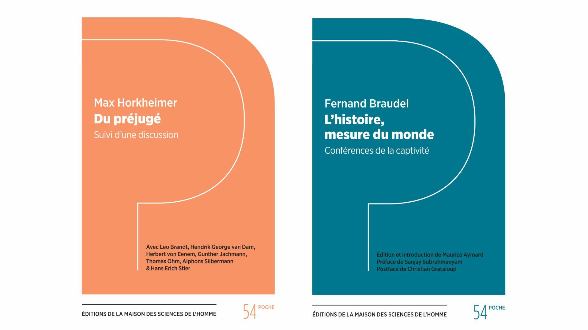 Couvertures Du préjugé, de Max Horkheimer et L’histoire, mesure du monde de Fernand Braudel (éditions de la maison des sciences de l’Homme) - Photo MSH