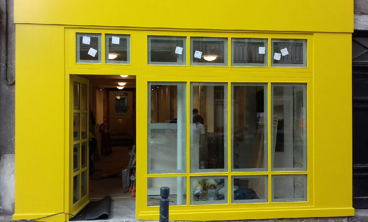 A Nevers, la nouvelle façade jaune de Gens de la lune est en harmonie avec celle des Cyprès, l'autre librairie de Wilfrid Séjeau. - Photo LIBRAIRIE LES GENS DE LA LUNE