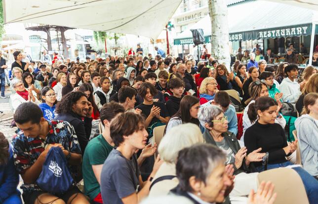La jeunesse n'a pas boudé son plaisir de participer à la "lecture dessinée" de Thomas Scotto et Regis Lejonc- Photo LES CORRESPONDANCES DE MANOSQUE / NICOLAS SERVE