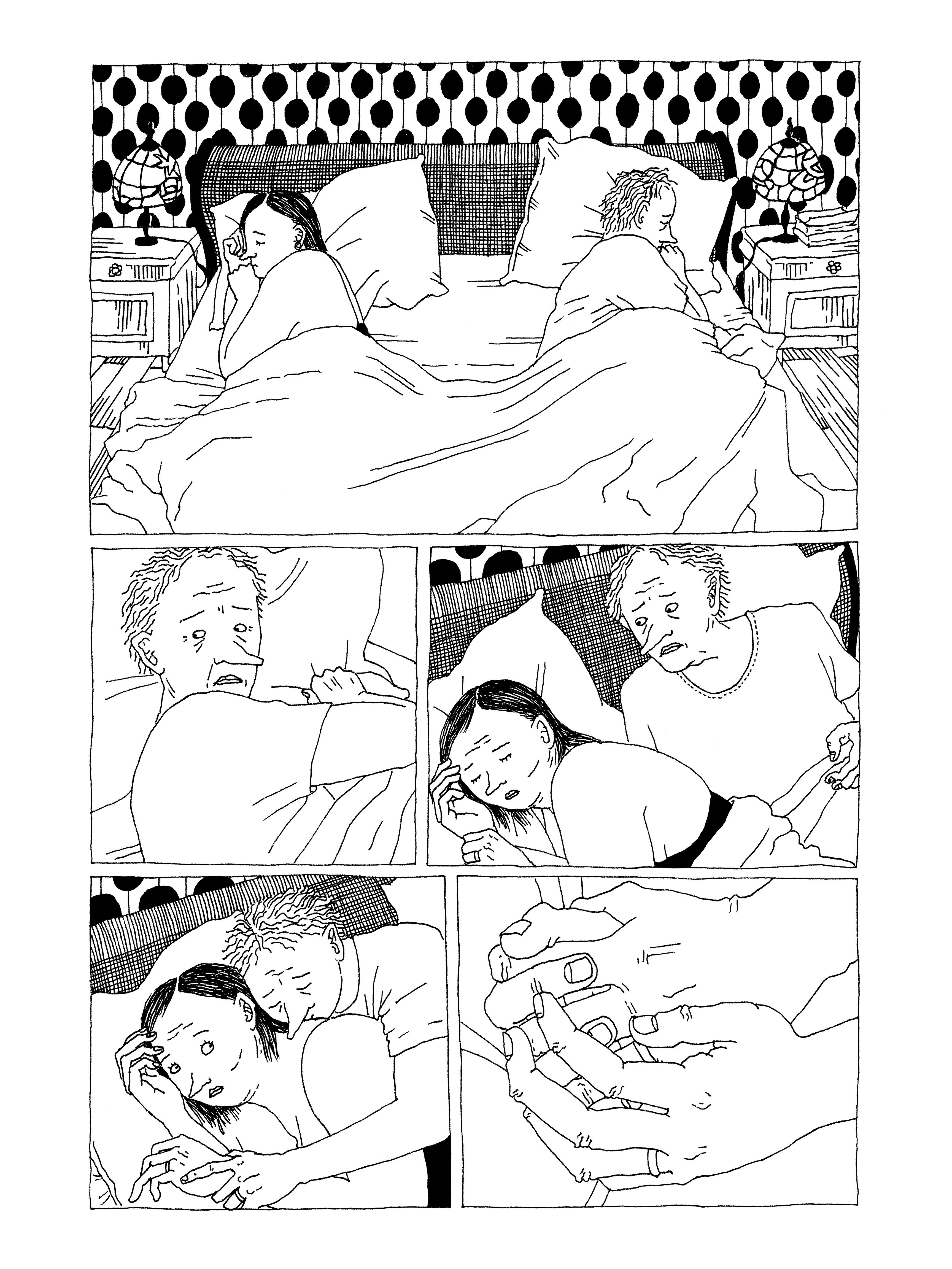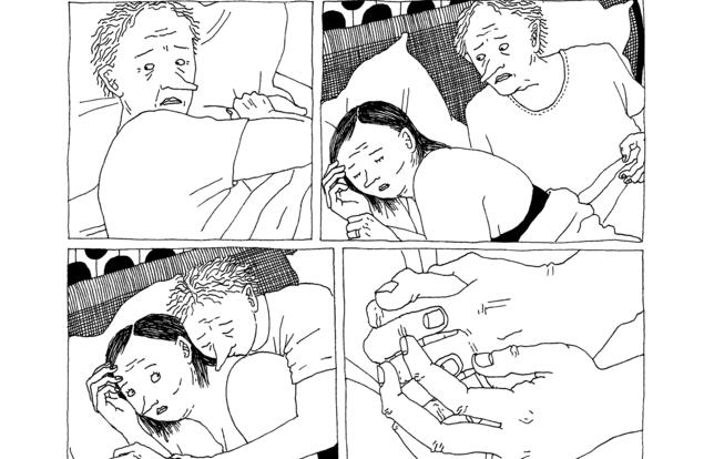 Album de famille. Autrice en 2022 d'un premier album très remarqué, Roxane vend ses culottes (Tanibis), Maybelline Skvortzoff donne dans son roman graphique Tachycardie sa vision très personnelle de la « tranche de vie ». Alors que les mangas nous ont habitués à ce genre où l'on suit l'existence de personnages ordinaires souvent dans une atmosphère feel good, ce sont quelques jours du quotidien sombre et âpre d'une famille qu'elle dépeint ici. Le père et la mère, la cinquantaine, forment un couple très soudé, même si l'usure et le poids des années les rongent. Elle, très en demande de rapports intimes, s'inquiète de voir son mari se désintéresser de son corps. Lui, sympa mais largué, tente de partager la culture cinéma et rock de sa jeunesse avec sa fille cadette Ninon et la copine de celle-ci, Eva, deux ados à la moquerie facile. La fille aînée, Judith, travaille sans conviction dans un magasin bio et vit avec son copain, un mollasson de 31 ans qui espère percer dans la musique. Maybelline Skvortzoff orchestre avec maestria les faits et gestes de ce petit monde, plaçant ses protagonistes au cœur de drames tristement banals : maladie, tromperie, licenciement, harcèlement, décès... Avec une cruelle précision, elle raconte le repas de famille qui tourne mal, la gamine qui drague le père de sa copine avec une photo dénudée, l'ingestion d'huîtres espérées aphrodisiaques qui vire à la catastrophe intestinale. Son dessin cru, sans concession, révèle nombre de détails triviaux : les corps sont usés, les cheveux se raréfient, les vêtements que l'on croit sexy boudinent. Ses cadrages parfois serrés, mettant l'accent sur des détails en apparence insignifiants, contribuent à créer une atmosphère à la fois familière et troublante. Maybelline Skvortzoff flirte même avec le fantastique (l'étrange ver qui ronge Ninon), renforçant ce sentiment d'inquiétante étrangeté. Mais Tachycardie est loin de n'être que noirceur et malaise. L'autrice est d'une remarquable drôlerie sur l'époque, épinglant ses travers d'un humour pince-sans-rire. Surtout, donnant l'impression de connaître intimement ses personnages, elle leur porte une grande empathie. Et permet à presque chacun d'entre eux de trouver amour ou réconfort, ce qui fait de Tachycardie un album profondément humain et plus tendre qu'il ne le paraît de prime abord.
