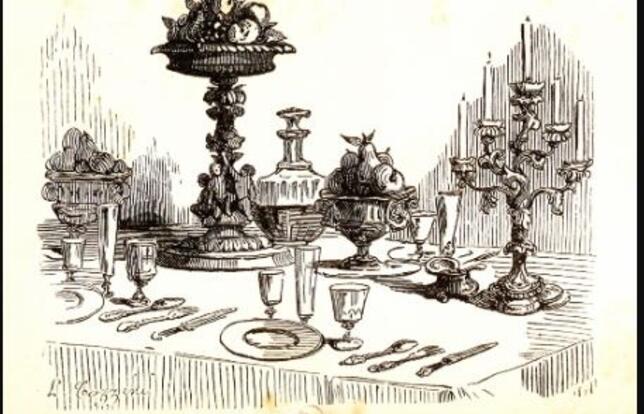 Au commencement n'étaient que la cuillère et un silex tranchant servant de couteau. Et puis apparut, au Moyen Âge, une fourche miniature, calquée sur celle des paysans, avec deux doigts plats. Elle servait essentiellement à attraper des viandes dévorées ensuite avec les doigts. Il a fallu attendre la Renaissance, et le raffinement italien, pour que naisse la fourchette, petite fourche à quatre dents recourbées. Même si son usage ne toucha pas tout de suite l'ensemble de la population, on peut considérer la fourchette de table comme l'une des inventions humaines les plus décisives, comme la roue. Elle est devenue l'outil du gourmet, ainsi que support d'inspiration pour les artistes. À la cour, dans les palais, ou même chez les bourgeois, il était d'usage de présenter des couverts en métaux précieux (argent, vermeil, or), ouvragés, décorés voire armoriés. Tout cela pour aboutir à un petit objet suédois standard au manche en plastique coloré, qui résiste mal au lave-vaisselle. Marie de Médicis en resterait baba.