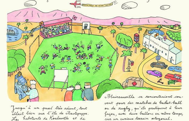 Koalas contre blaireaux. Depuis la nuit des temps règne sur l'île de Rastepappe, peuplée de koalas et de blaireaux, une parfaite harmonie. Tout va pour le mieux dans le meilleur des mondes jusqu'au jour où les koalas, grands dévoreurs de feuilles d'eucalyptus, manquent cruellement de pitance. Bizarre, les précieux arbres dépérissent à vue d'œil alors que, sur le sol, on n'aperçoit nulle trace de la moindre feuille. Archibald, détective de son état et habitant notoire de Koalaville, est chargé de mener l'enquête. En même temps que l'étrange déclin des arbres, notre fin limier note aussi un enrichissement massif et soudain des habitants de Blaireauville. Tiens, tiens, les deux histoires ne seraient-elles pas liées, par hasard ? Dans cette querelle de voisinage, tout est irrésistible. À commencer par le nom des habitants. Archipolata, Archifrédélètre et aussi Archiparmentier qui tient un fameux restaurant trois étoiles à Koalaville, obligé de fermer par manque de matière première. Aux antipodes de l'île, habitent Blaireaudote, célèbre prof de latin et grec, et Blaireautative, non moins célèbre imprimeur. Tout ce beau petit monde flanqué chacun de femme et enfants va finir par s'écharper sévèrement dans un combat épique avant le retour au calme plat qui sied si bien à Rastepappe. L'histoire, « entre Babar et Hercule Poirot » comme dit l'éditeur, est aussi servie par le grand sens du détail de l'artiste Paul Cox et surtout par son dessin, à la fois simple et sophistiqué, efficace, puissamment humoristique.