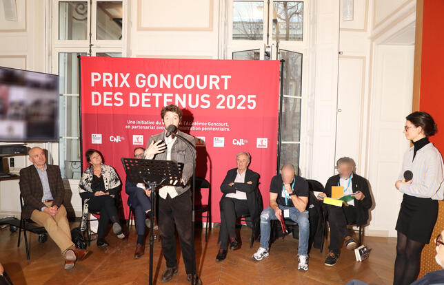 Dans la grande salle du Centre national du livre (CNL) où était organisée la remise du prix Goncourt des détenus ce mardi 16 décembre, le lauréat Paul Gasnier, couronné pour La collision (Gallimard), a reçu sa récompense entouré des membres de l’Académie Goncourt, de trois autres auteurs de la première sélection (Guillaume Poix, Alfred de Montesquiou et David Deneufgermain), de deux détenus membres du jury ainsi que d'Antoine Gallimard, président du groupe Madrigall (Gallimard, Flammarion…), et Régine Hatchondo, présidente du CNL.