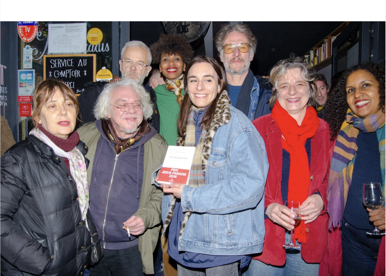 Pauline Peyrade est récompensée pour Les Habitantes, paru chez Minuit. Elle a reçu son prix au bar JesusParadis, à Paris.