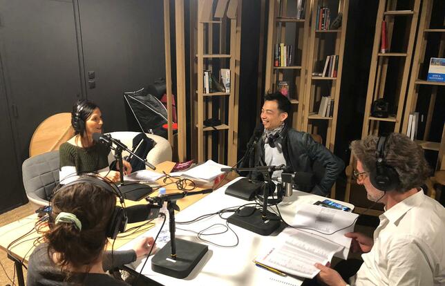 L'équipe de Livres Hebdo dans le studio des Voix du livre - Photo Livres Hebdo
