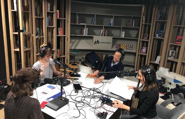 L'équipe de Livres Hebdo dans le studio de création du podcast "Les Voix du livre" - Photo Livres Hebdo