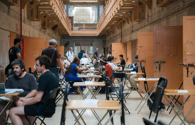 Simón Vázquez a réussi à obtenir le financement de Read grâce au soutien du gouvernement autonome de Catalogne et de la ville de Barcelone. Cette dernière a mis à disposition un lieu emblématique : l’ancienne prison La Model, ouverte en 1904 et définitivement fermée en 2017. Des fondations, comme la Rosa Luxemburg Stiftung, ont complété le budget.