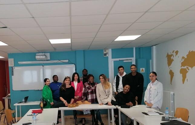 Aujourd'hui, elle accueille l'écrivaine Mona Messine. Le petit groupe est installé autour de tables disposées en carré. Pas de nuisances sonores extérieures. Double vitrage efficace, atmosphère détendue. « J'ai été sollicitée pour cet atelier car j’interviens déjà dans d’autres dispositifs, explique Mona Messine. J’ai lancé une école d’écriture avec laquelle je travaille avec tout type de public ». Elle se présente ainsi à son auditoire : « J’ai 29 ans, et avant de faire ce que j’aime, écrire, j’ai travaillé pour de grosses entreprises comme Air France. C’était beaucoup de tableaux Excel… ». Les oreilles sont attentives. Mona Messine insiste sur l’intérêt de maîtriser l’écriture : « Pour porter vos envies, aller plus loin dans vos projets, il va falloir en parler et les présenter à d’autres, et pour ça, c’est archi important de maîtriser l’écriture. Ça fait partie des compétences utiles, indispensables pour la communication, que ce soit pour des e-mails ou pour ses posts Instagram ! ».