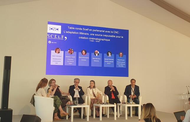 Shoot the Book! 2023 a fêté à Cannes son 10e anniversaire. Au terme de deux jours d’échanges entre éditeurs et producteurs, la Société civile des éditeurs de langue française (Scelf) et le CNC ont livré leurs constatations sur le marché de l’adaptation littéraire au cours d’une table ronde donnée sur le Festival de Cannes. Animée par la directrice communication du CNC Sarah Drouhaud, elle a donné la parole à la directrice générale de la Scelf Nathalie Piaskowski, au directeur général du CNL Pascal Perrault, à l’autrice Marie Darrieussecq, au producteur Alexandre Charlet (Les Films du Cygne) et au scénariste Gilles Marchand (coauteur du scénario de La Nuit du 12 de Dominik Moll).