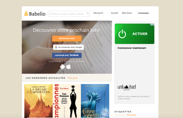 Le site de recherche bibliographique Babelio - Photo Capture d'écran