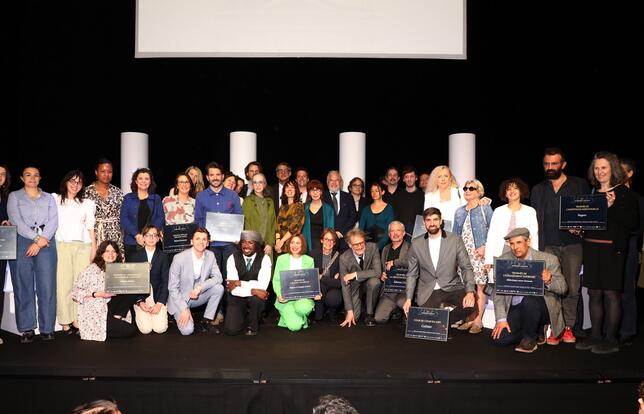 Les lauréats des Trophées de l'édition 2025 rassemblés sur la scène du théâtre de l'Odéon - Photo Olivier Dion